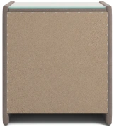 Тумба обтянута высококачественным велюром, что придает ей особый уют и комфорт. Имеет стеклянную столешницу и два вместительных выдвижных ящика с механизмом Push to open. Скругленные торцы модели, минимизируют риск удариться в темноте.