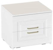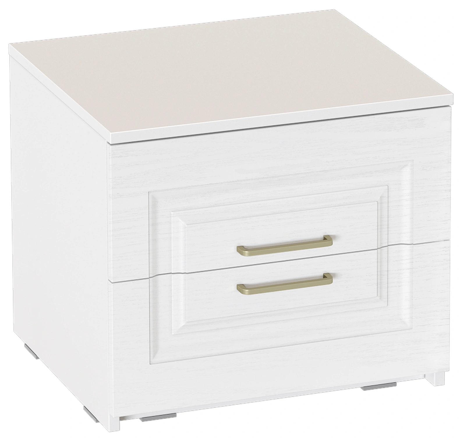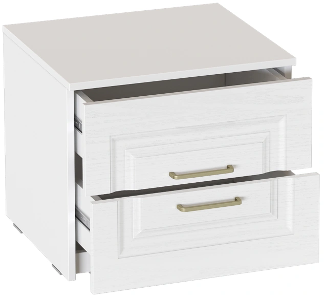 Тумба выполнена в цвете Айс 06 / Белый Аляска. Классическая фрезеровка фасадов и ручки-скобы из брашированного золота придают изделию особый шарм и элегантность. Тумба оснащена двумя ящиками полного выдвижения на шариковых направляющих, которые скользят бесшумно и плавно. Дно и задние стенки выполнены из ХДФ. На опорах размещены войлочные подпятники.