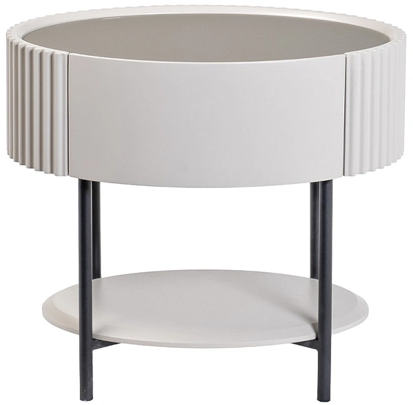 Дизайнерская тумбочка SCALA светлого серо-бежевого оттенка из материалов премиального качества украсит собой любую современную гостиную, спальню, кабинет. Функционал этой модели гораздо шире, чем просто хранение вещей. Она выполняет роль эффектного акцента в интерьере, а ее поверхность становится подставкой для ваз, кашпо, фоторамок, декора и прочих мелочей. Тумбочка органично вписывается в современные интерьеры жилых квартир и рабочих кабинетов. С ней можно играть на контрастах или оформлять пространство в монохроме. Глянец тумбочки актуально вписывается в современные интерьерные решения.