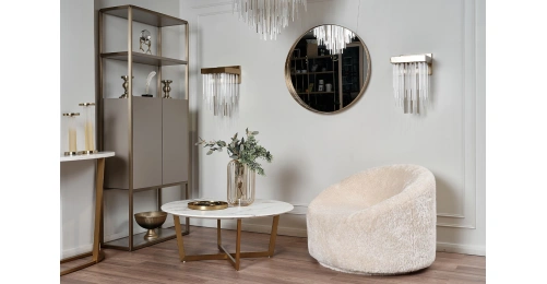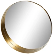 Круглое зеркало в металлической раме не может похвастаться затейливостью форм или нарядным обрамлением. Но в этом и состоит его особое очарование – оно простое, легкое, элегантное. Металлическая рама «под золото» тонко намекает на роскошь современного стиля ар-деко, однако это не мешает зеркалу круглой формы быть универсальным аксессуаром. Ему найдется место в любых интерьерах – начиная от современной неоклассики и заканчивая строгим минимализмом. Благородный блеск золота одинаково эффектно смотрится на грубых кирпичных кладках в стилистике лофт и на фоне ровно окрашенных стен. Это круглое зеркало станет главным украшением спальни, прихожей или гостиной.