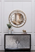 Представленное зеркало круглое в раме имеет классическую форму. Поэтому его легко сочетать в любом интерьере – можно применять для спален, коридоров или прихожих. Зеркало можно использовать как отдельный предмет декора или как часть композиции. В гостиной круглое зеркало в металлической раме сыграет декоративный прием. В спальне или прихожей в сочетании с консолью и тумбой оно станет практичным элементом, используемым по назначению. Зеркало в золотой раме выглядит стильно и концептуально. Аксессуар добавит света в комнату за счет игры бликов и отражаемых солнечных зайчиков.