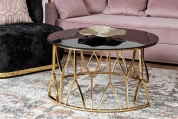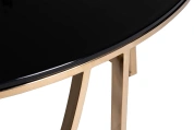 «Золотой» журнальный стол – воплощение роскоши и креативного дизайна. Вместо традиционной опоры в виде ножек – основание необычной формы из полированной нержавеющей стали золотого цвета. В качестве столешницы – закаленное зеркальное стекло эффектного черного цвета. Этот дизайнерский журнальный стол для гостиной без сомнения станет украшением интерьера. Его можно использовать в качестве подставки под интерьерный декор, для сервировки чаепития и просто в качестве элегантного акцента гостиной.