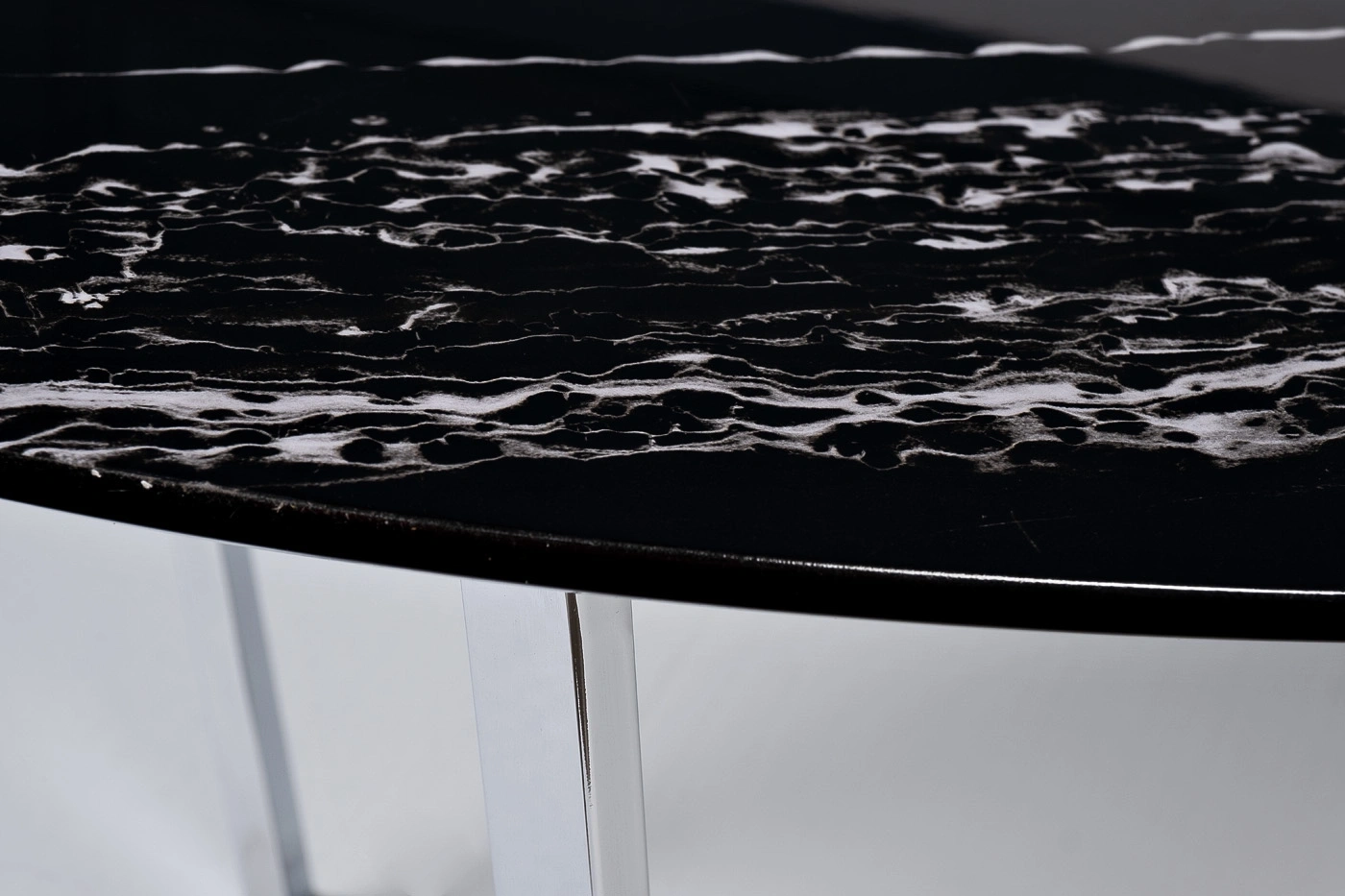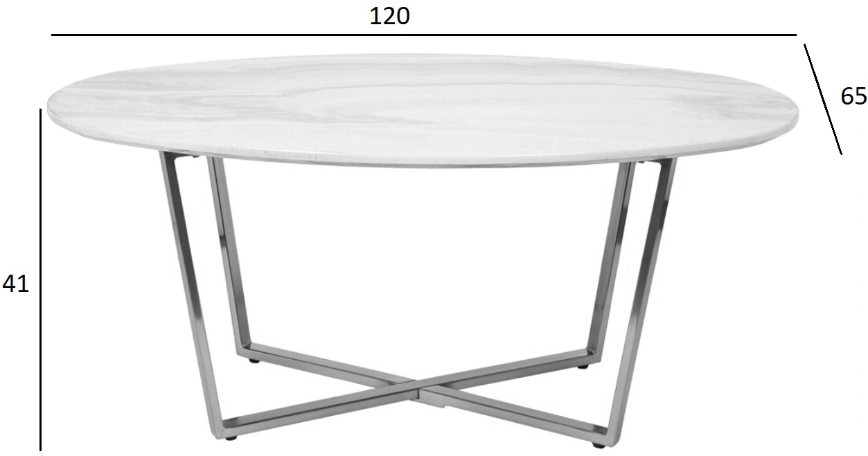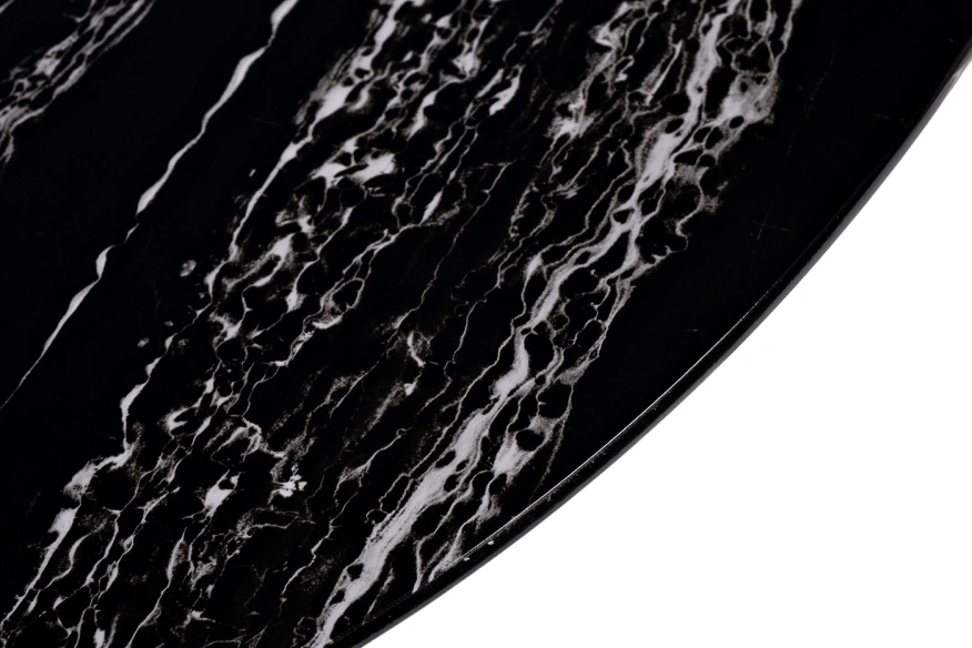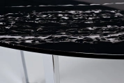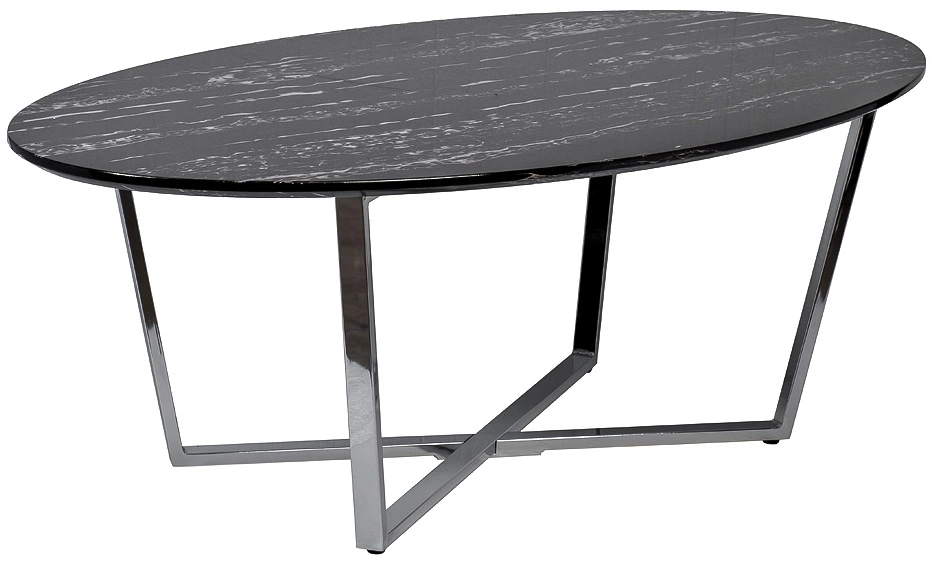 Лаконичная современная модель журнального стола станет центральным украшением вашей гостиной. Столешница мебели выполнена из качественного МДФ с полимерным покрытием для защиты от влаги и царапин. Она представлена в черно-белом оттенке с имитацией под мрамор. Ее красиво дополняют оригинальные ножки из нержавеющей стали в оттенке хром. Модель отличается стандартными размерами, поэтому ее можно располагать в гостиных средней и большой площади. А тонкие ножки оставляют много свободного пространства, визуально расширяя помещение. Приобретайте овальный журнальный столик на сайте Garda Decor, чтобы придать дому уюта, комфорта и уникального стиля. Толщина столешницы - 20мм.