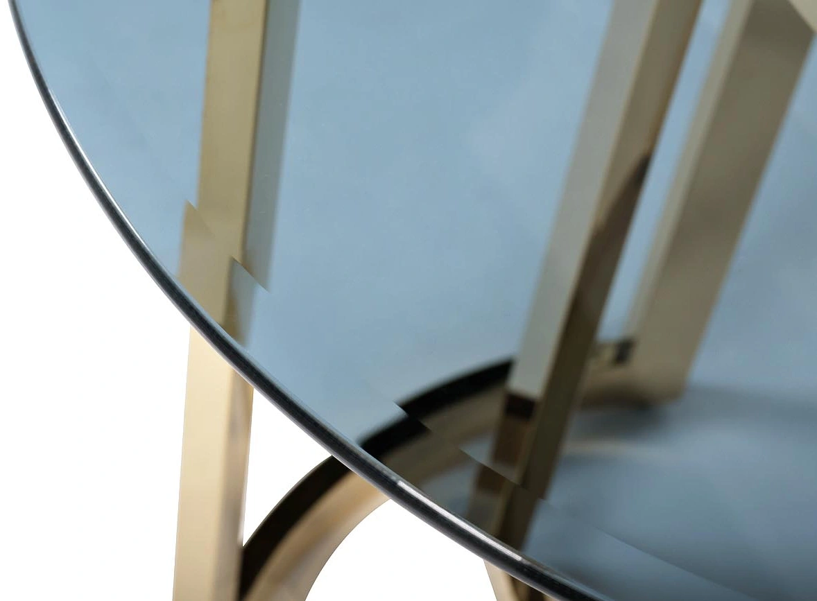 Дизайнерский журнальный столик – это красота и удобство в вашем доме. Столешница выполнена из тонированного закаленного стекла, основание – из нержавеющей стали цвета золота. Беспроигрышное сочетание цветов, превосходные материалы, элегантные пропорции и демократичная цена - именно то, что нужно дому, обставленному с хорошим вкусом. Толщина столешницы - 10мм.