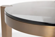 Этот круглый стеклянный стол — не просто функциональная поверхность, а элемент, призванный придать пространству невесомость и изысканность. Его прозрачная столешница, словно парящая в воздухе, и элегантные металлические ножки создают ощущение открытости и современного минимализма. В актуальных интерьерных концепциях, где ценится воздушность и отсутствие визуального шума, этот стол становится идеальным акцентом. Он не загромождает пространство, а, наоборот, способствует распространению света, делая комнату более просторной и светлой. Идеально подходит для размещения декоративных предметов, книг или напитков, он легко интегрируется в любую зону отдыха, будь то гостиная или уютный уголок для чтения.