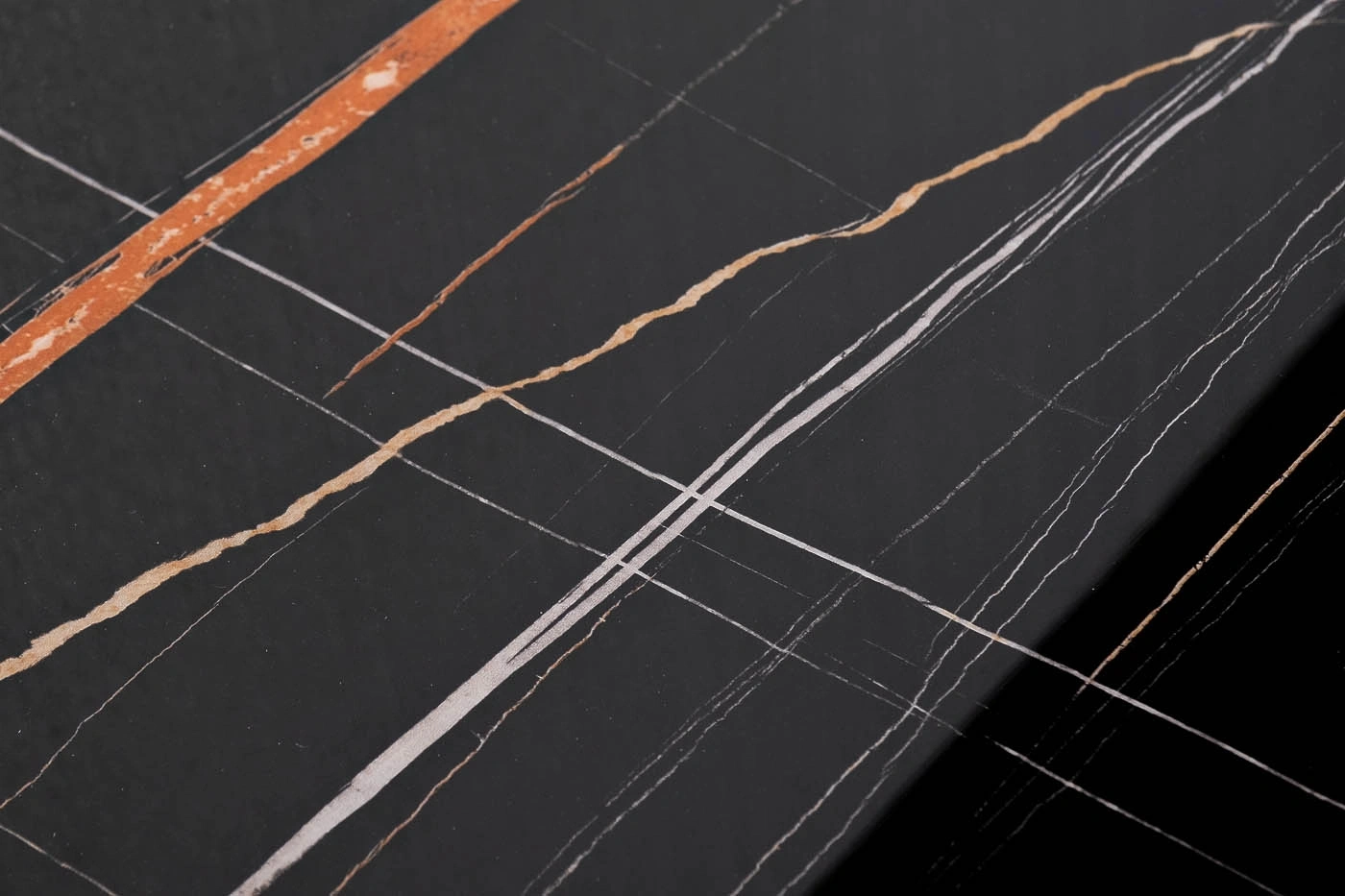 Дизайнерский журнальный стол в современном стиле – эксклюзивная мебель, которая добавляет обстановке гостиной особенного изящества, подчеркивает статус интерьера. Столешница из МДФ с имитацией под мрамор является главной фишкой этой мебели. За устойчивость и визуальную легкость отвечает основание из металла с эффектом черного зеркала. Журнальный черный стол эффектно смотрится в интерьерах ар-деко, фьюжн, авангард, неоклассика, минимализм, сочетается с диваном, креслами и другими предметами современной обстановки. Низкий журнальный стол – стильный современный тренд, дизайнерское решение для вашей обстановки.
