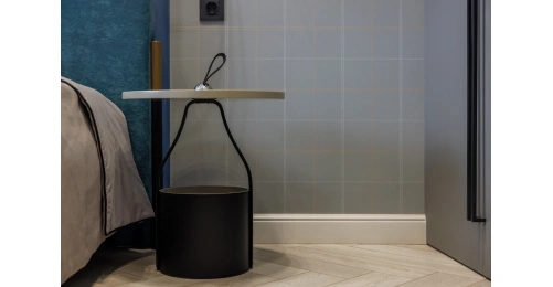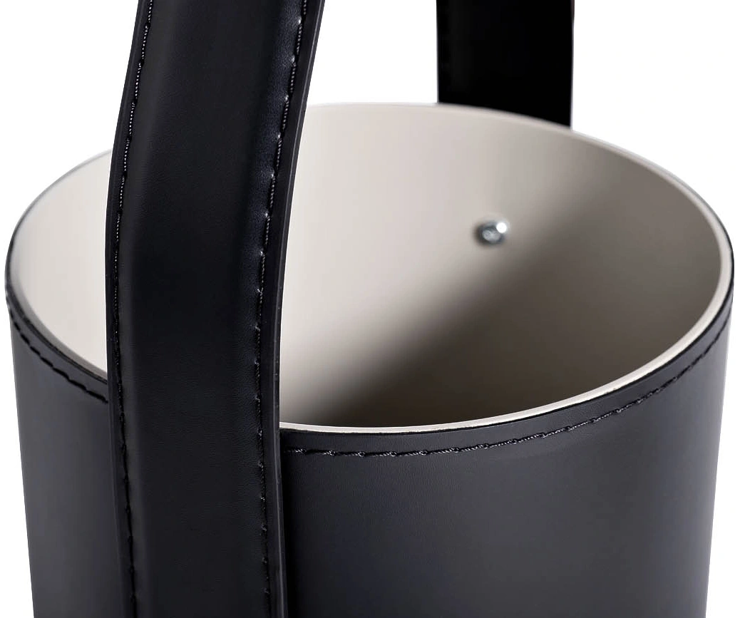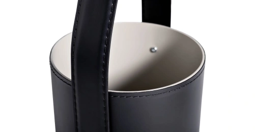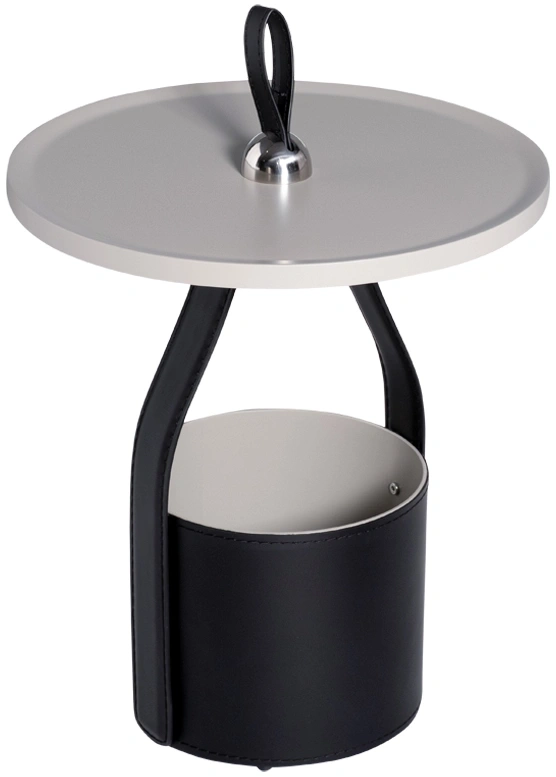 Оригинальный журнальный стол напоминает модную кожаную сумку с ручкой. Вместительная металлическая корзина, обтянутая черной кожей, прекрасно подойдет для хранения журналов, рукоделия или игрушек, а на столешнице с небольшим бортиком, выполненной из светло-серого МДФ, можно сервировать чай или кофе. Удобная ручка-петля позволит без труда переставить столик в нужное место - к дивану или креслу.