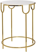 Этот круглый журнальный столик – гармоничное сочетание элегантной столешницы из белого натурального мрамора и металлического корпуса с золотым блеском. Эта мебель может стать главным акцентом в помещении или занять нейтральное место, «молча» выполняя свою основную функцию. Дизайнерский журнальный столик с мраморной столешницей – отличный выбор для интерьеров с акцентом на статус. Благодаря компактным размерам он прекрасно впишется в интерьер гостиной, спальни и даже прихожей, где сможет выполнять задачи консоли для хранения ключей и аксессуаров.