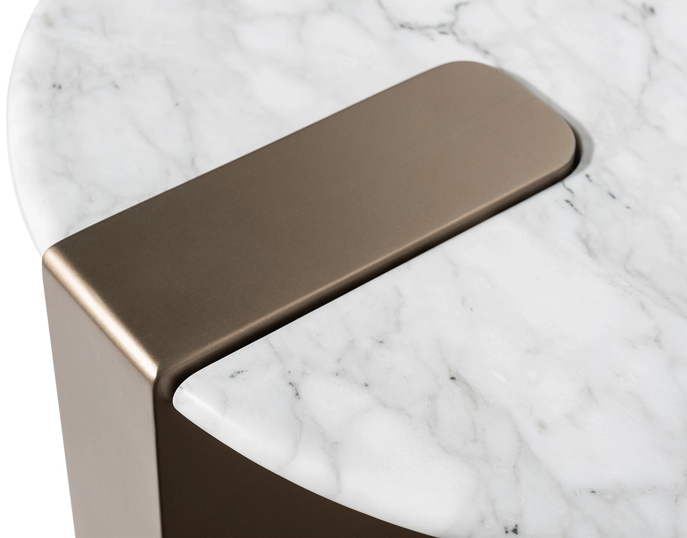 Журнальный столик Brandon — скульптурный акцент, где природа встречается с архитектурой. Его круглая столешница из натурального мрамора с серыми прожилками словно замерзший рисунок облаков — каждый экземпляр уникален, как отпечаток пальца. Массивная основа из МДФ цвета античной бронзы не просто опора — это художественный контраст: холодный, но тёплый, строгий, но живой. Линия соединения столешницы и ножки выгнута с инженерной точностью — будто камень лежит на опоре без усилий, паря в пространстве. Идеален для гостиной в стиле ар-деко или фьюжн — там, где уместна мраморная мебель с характером. Это не просто журнальный столик, а элемент, способный задать тон всему интерьеру: элегантный, но не показной, роскошный, но не кричащий. Подойдёт тем, кто ценит дизайнерскую мебель, где каждая деталь — результат продуманного диалога между материалами и формой.