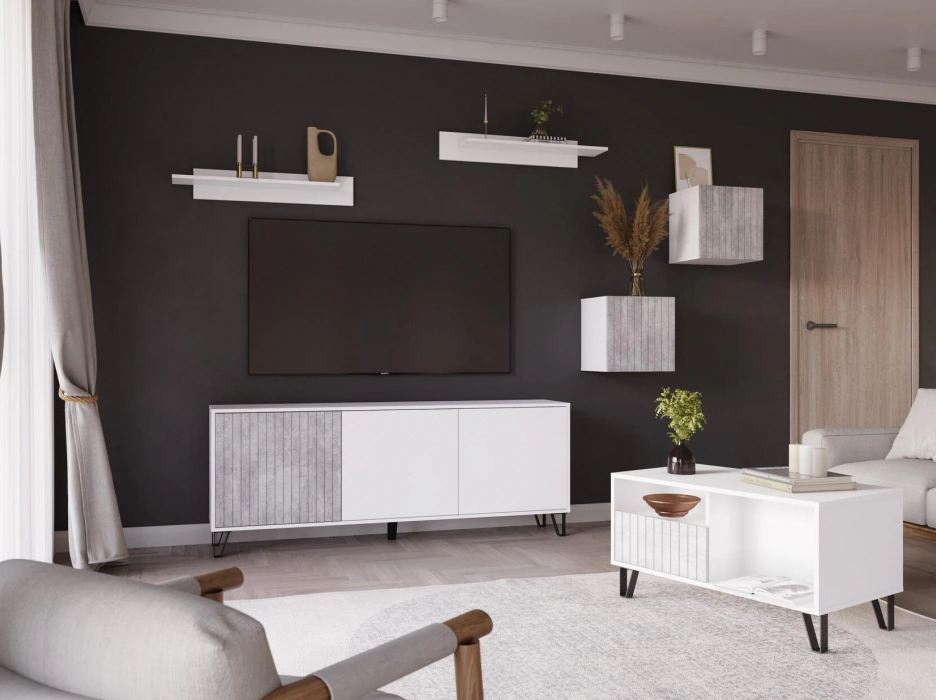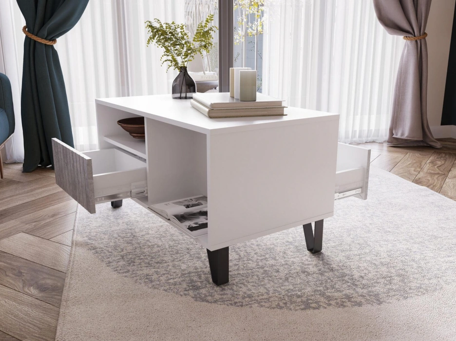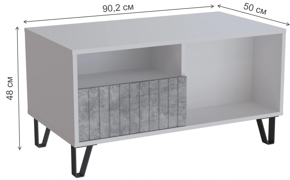 Журнальный стол Эннис, ЛДСП, белый, бетон светлый, каркас черный