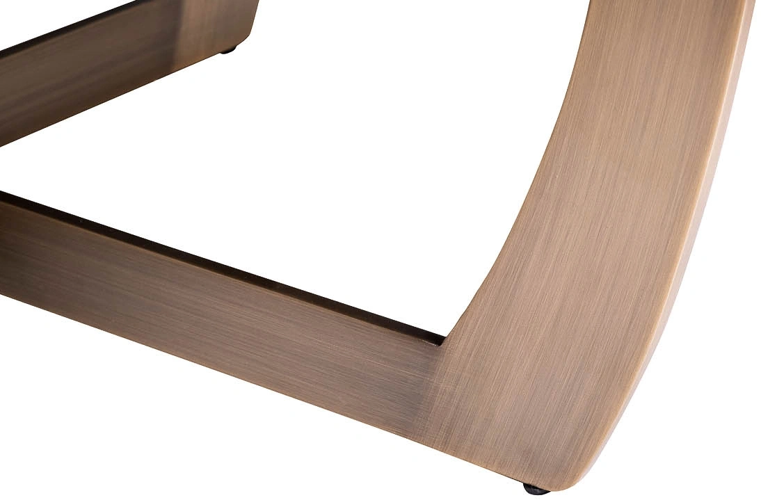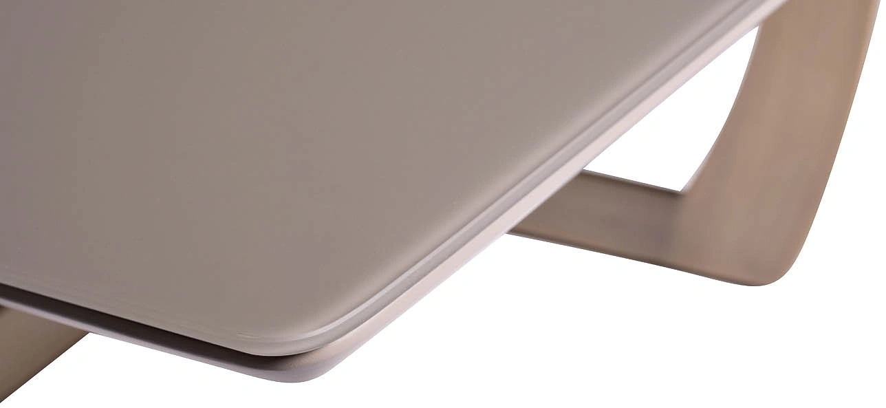 Cуперсовременный журнальный стол из мебельной коллекции Space от ведущего бельгийского дизайнера Тома Де Вульфа воплощает последние тенденции европейской интерьерной моды. Столешница из серого МДФ покрыта закаленным 5мм стеклом, обработанным по уникальной технологии, в результате которой поверхность приобретает гладкую и бархатистую фактуру, будто обкатанную морем. Оригинальная фигурная опора медного цвета заменяет традиционные ножки, обеспечивая устойчивость и безопасность конструкции. Все части стола выполнены из исключительно качественных материалов по самым современным технологиям.